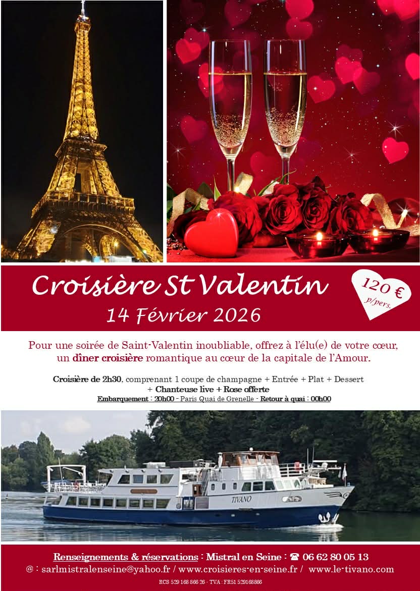 Réservez notre croisière spéciale Saint Valentin le 14 février 2026 !